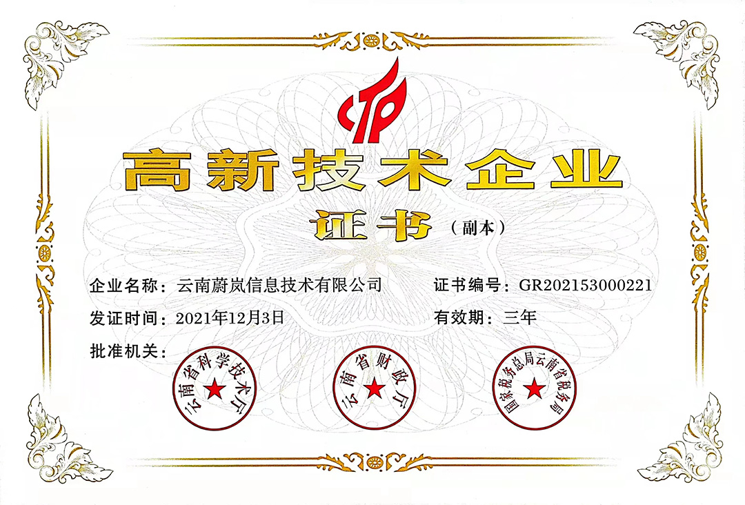 尊龙凯时旗下云南蔚岚信息技术有限公司、云南尊龙凯时科技股份有限公司、云南尊龙凯时软件系统有限公司、昆明尊龙凯时网络信息技术有限公司、重庆尊龙凯时网络信息技术有限公司等5家企业获得国家高新技术企业认定。